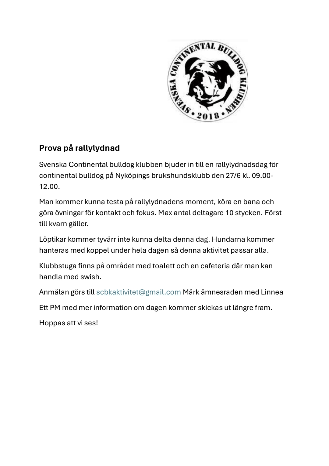 Lokalombudet i Södermanlands län bjuder in till träff med fokus på rallylydnad!