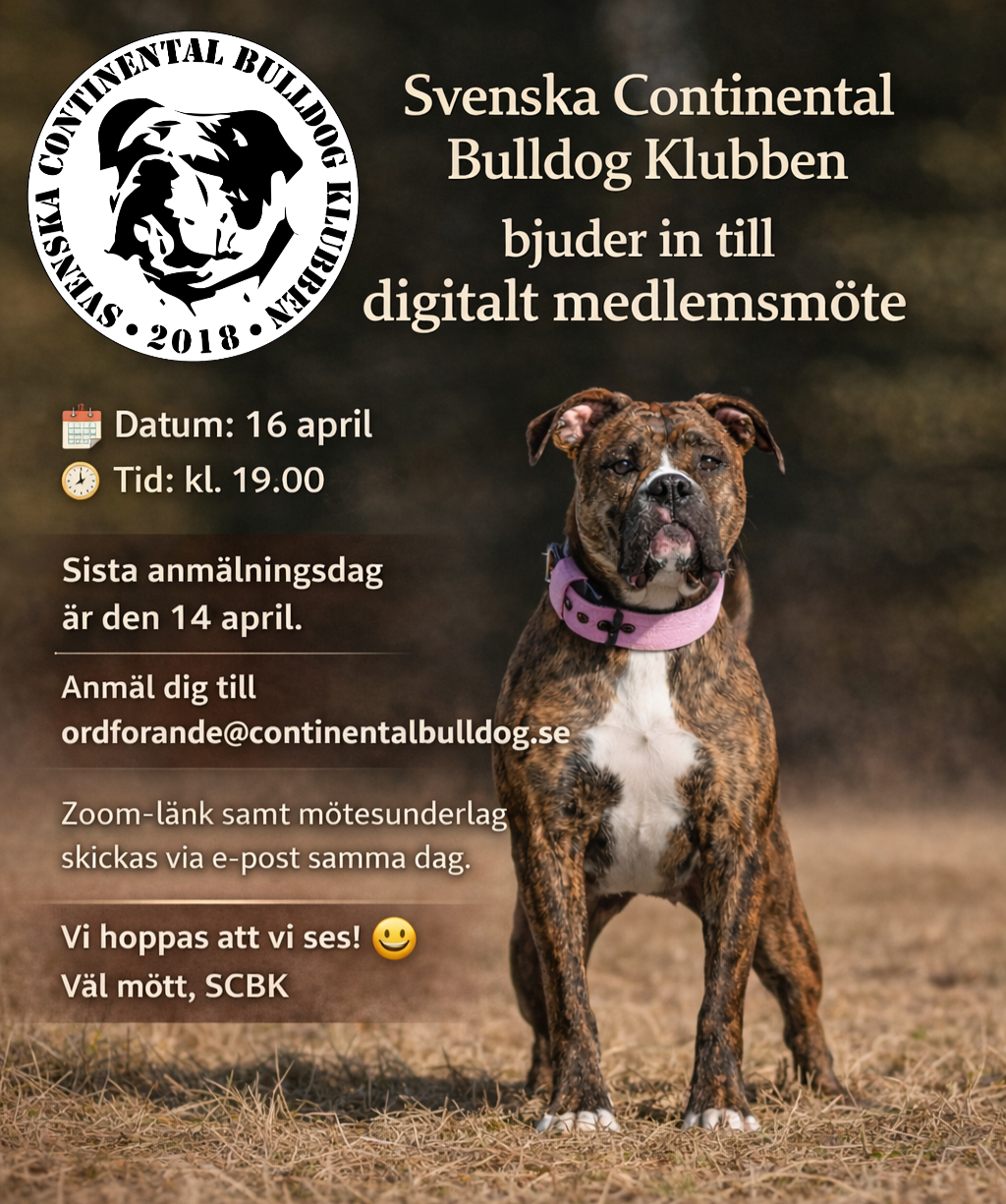 Skicka din anmälan till: ordforande@continentalbulldog.se